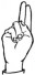 На ћирилици написано ДИМИТРИЈЕ УЛЕМЕК састоји се из 15 слова [?]. Исписано ћириличном једноручном азбуком за глувонеме: